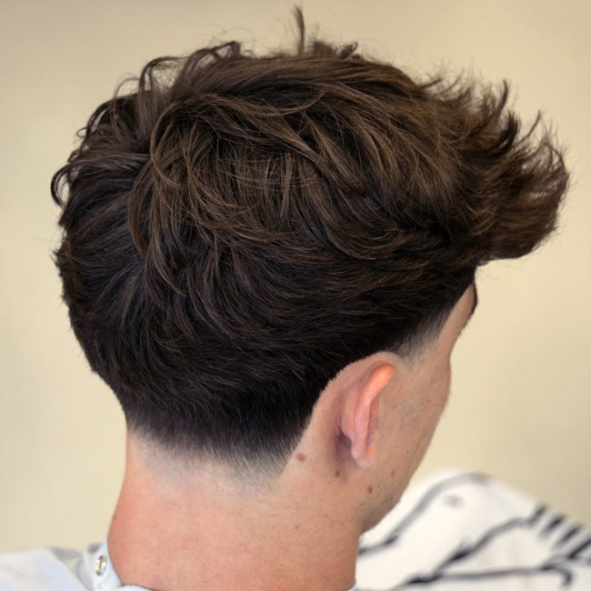 This style pairs heavy texture with a skin fade to add contrast and enhance the length on top. A modern style that will stand the test of time.